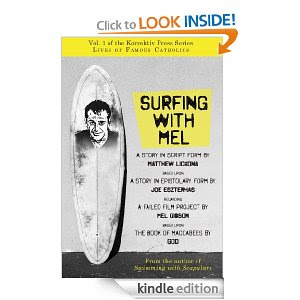 Many of you know Matthew Lickona--from writing Swimming with Scapulars, numerous short stories, the blog Godsbody and its collaborative morph into Korrektiv ("Bad Catholics, blogging at a time near the end of the world"). The Korrektiv Press' second title is Lickona's own Surfing With Mel (Lives of Famous Catholics), a fictionalized version of real life events that reputedly occurred as two Catholic-influenced movie makers--Mel Gibson and Joe Eszterhas--try to collaborate on putting the Book of Maccabees on screen. The narrative in script form (and the real life backstory) is a bit like watching a grippingly written trainwreck in slow motion, but it isn't presented for prurient sightseeing. Between the swearing, slurs, creepiness, humor, and sadness, there are multiple moral narratives here: how do we make moral decisions when we are spinning out of control? When do you give people a chance when they appear to have the moral maturity of a rabid dog? How do you follow God in such an insanely messed up universe, messed up primarily from your own decisions? No easy answers, but it makes for fascinating reading. I encourage people who can handle the language (OK, I've warned you, Mel is not a G rated character): do buy it and read it.